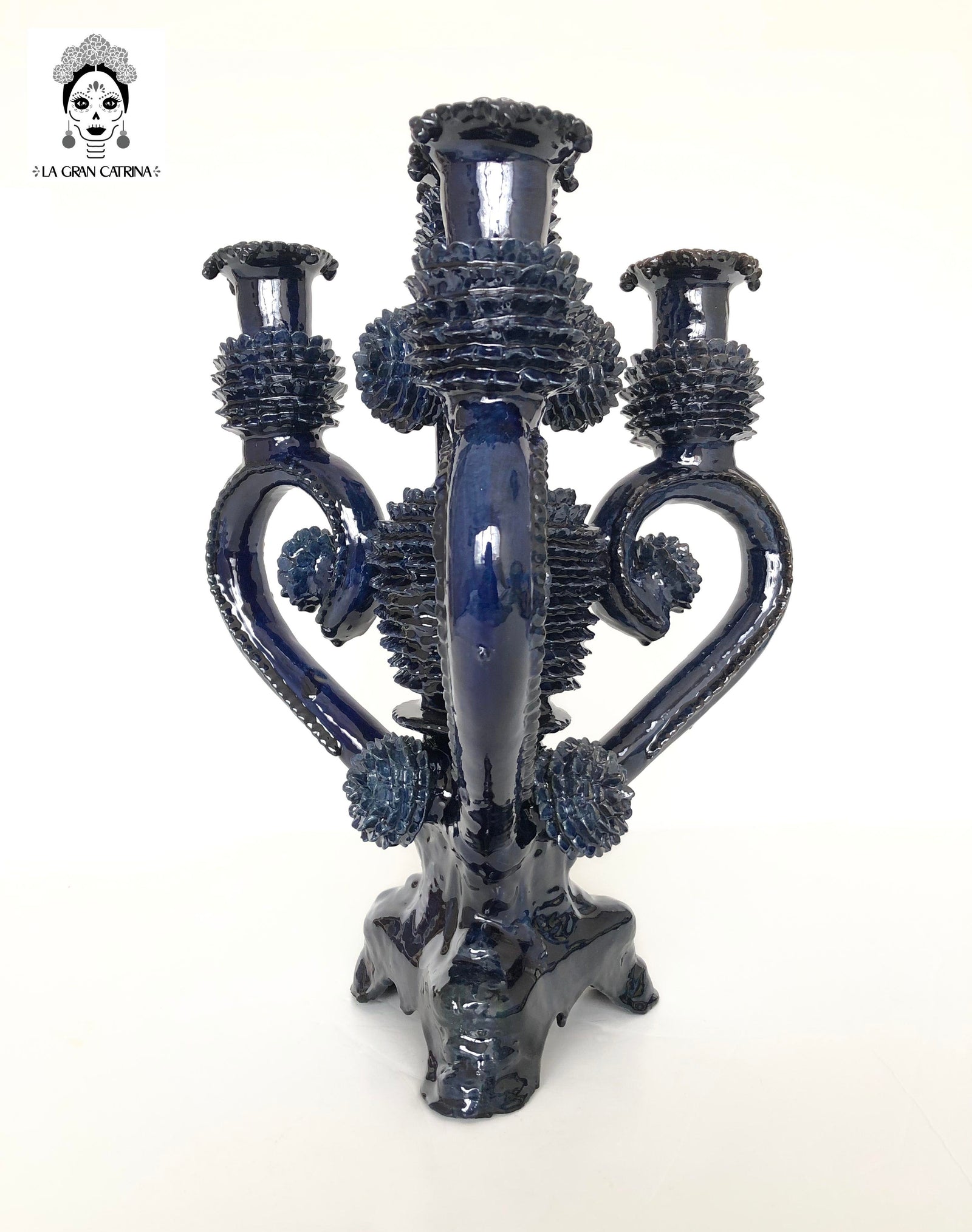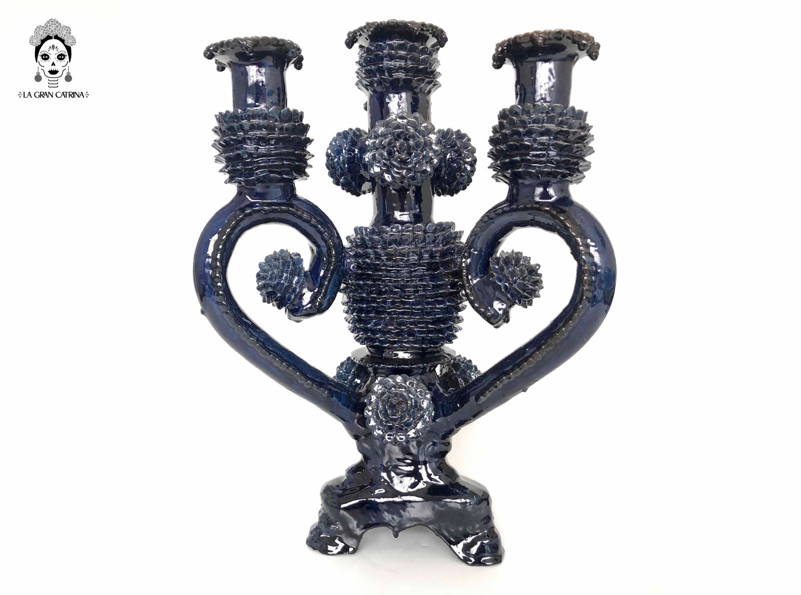 Candelero de Día de Muertos - Barro natural - 29 cm. 11.5 in.