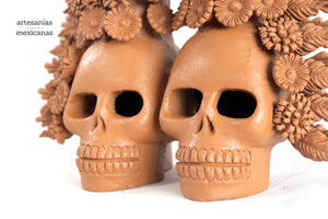 Las calaveras, símbolos del Día de Muertos, están incrustadas en la bace del arco, lo que da a esta pieza un toque de respeto y adoración. La textura suave y cálida del barro hace que este objeto sea perfecto para adornar cualquier habitación de tu hogar.Este Arco de Flores es una reminiscencia a la rica cultura y tradición mexicana, y es perfecto para cualquier aficionado al arte popular y la decoración.