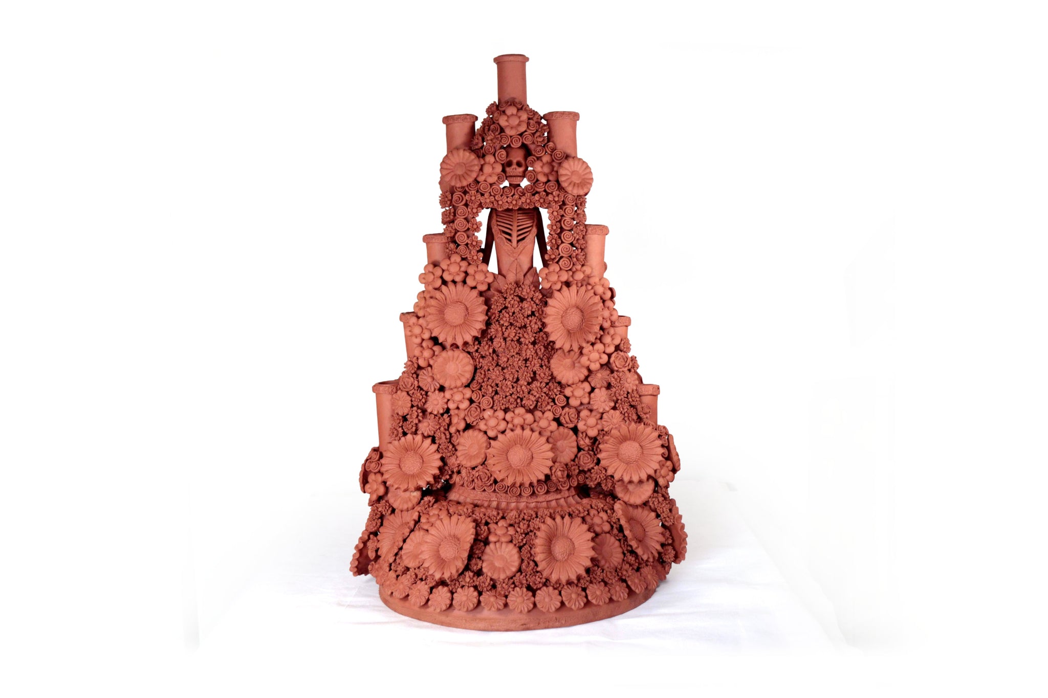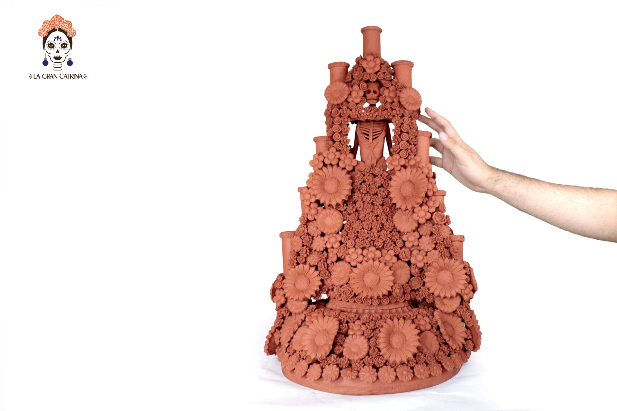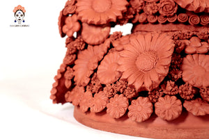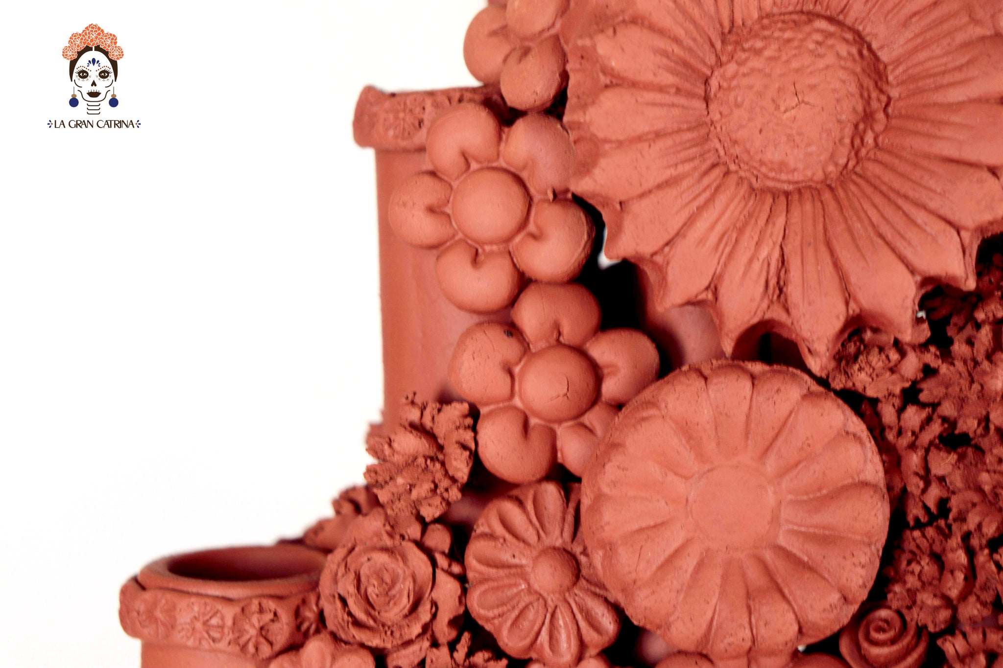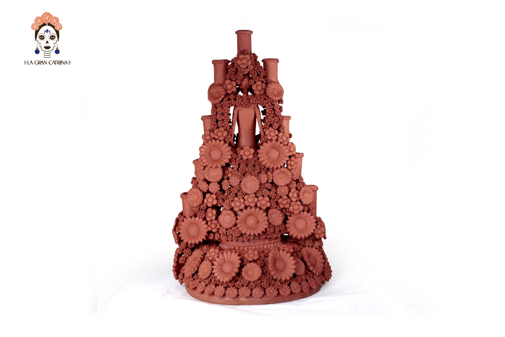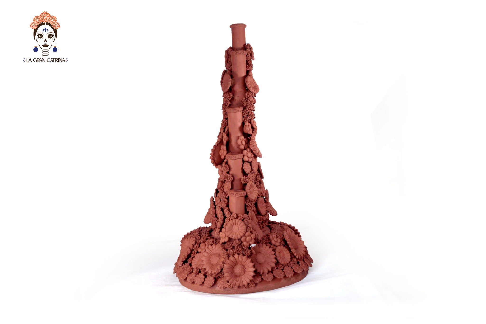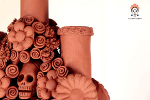 Candelero Altar Calavera Floral Barro Natural - 62 cm. 24.4 in.