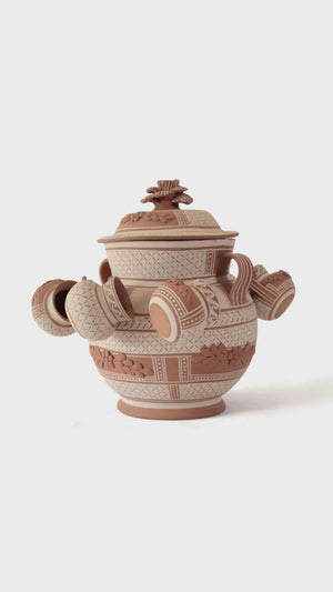 La artesanía de barro de Patamban, Michoacán, es una expresión viva de la tradición y la cultura de esta región mexicana, conocida por su rica historia y su profundo arraigo en las técnicas artesanales transmitidas de generación en generación. Estas piezas, que van desde utilitarios hasta decorativos, se caracterizan por sus vibrantes colores y detallados diseños florales, que capturan la esencia de la biodiversidad y las festividades locales.