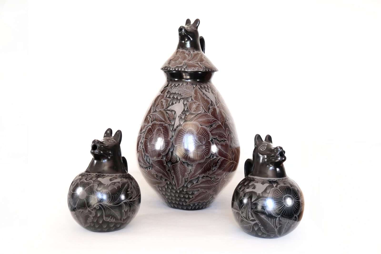 Primero, se preparan las piezas de barro y antes de que estas entren a un horno leña, cuando el barro aún conserva una ligera humedad, las piezas se cubren con un engobe (barro diluido) y pigmentos de color. Actuando como una capa decorativa, sin brillo propio, únicamente ofreciendo acabados mate o satinados que pueden cubrir o cambiar el color de la arcilla base y delinear figuras de animales, flores y diseños geométricos con engobes de otros colores.