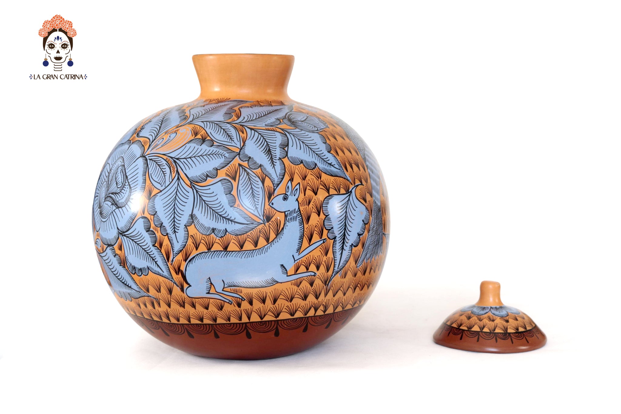 Cada línea pintada a mano refleja la paciencia del oficio y la herencia alfarera de la región, dando como resultado una pieza que transmite calma, movimiento y conexión con la naturaleza.