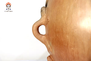 El acabado en barro cocido con variaciones tonales propias del proceso artesanal hace que cada pieza sea única, con ligeras marcas y matices que refuerzan su autenticidad. Ideal como objeto decorativo, jarrón escultórico o pieza de acento en interiores rústicos, wabi-sabi, contemporáneos o de diseño orgánico.