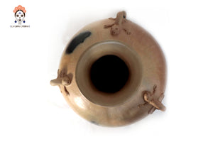 Esta vasija artesanal de barro natural es una pieza decorativa elaborada a mano mediante técnicas tradicionales de cerámica mexicana. Su cuerpo volumétrico y orgánico se complementa con asas escultóricas integradas, que rodean la pieza aportando carácter, textura y una estética contemporánea de inspiración ancestral.