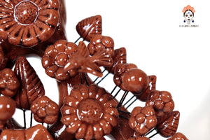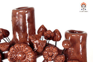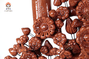 El Árbol de la Vida es una obra maestra de la artesanía mexicana, cargada de simbolismo y belleza. Este ejemplar, en tonos cafes vibrantes, está elaborado en cerámica fina y pintado a mano con detalles minuciosos que reflejan la destreza de los artesanos. Cada rama y figura que lo adorna cuenta una historia, fusionando elementos de la naturaleza, la religión y la cosmovisión tradicional.
