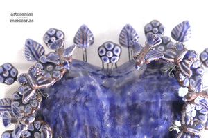 El Corazón de Barro Vidriado es una pieza que captura la esencia del arte tradicional mexicano. Elaborado con maestría en barro vidriado, este corazón azul vibrante está adornado con delicadas flores, aves y mariposas hechas a mano, creando un diseño lleno de vida y simbolismo. Cada detalle refleja la conexión con la naturaleza y la herencia cultural de México.