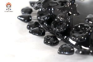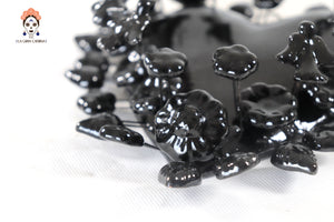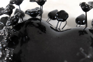 Corazón Barro Vidriado Negro con Flores - 22 cm 8.6 in.