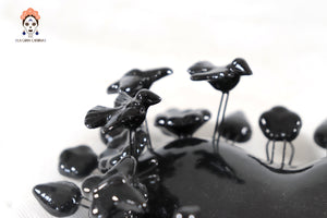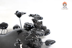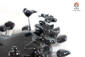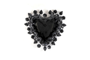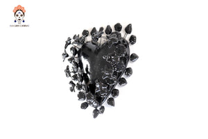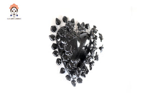 Este imponente corazón de barro vidriado en color negro azabache es una pieza de arte decorativo que fusiona la pasión del diseño mexicano con una elegancia contemporánea y sofisticada. Su estructura se distingue por una corona de delicadas flores, hojas y mariposas modeladas a mano que rodean la figura central, creando un relieve tridimensional de gran impacto visual.