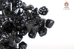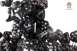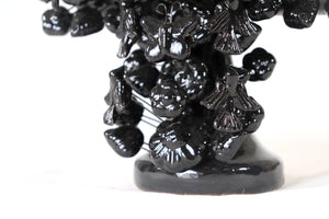 Cada elemento está modelado y ensamblado a mano, montado sobre finos alambres que le otorgan ligereza visual y volumen. El acabado vidriado aporta un toque contemporáneo a esta pieza profundamente arraigada en la cultura popular mexicana.