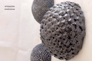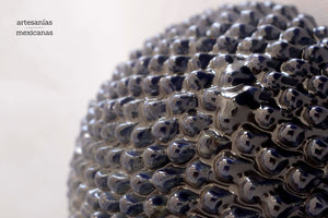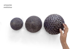 En estas esferas vidriadas azules de pared, la belleza y la serenidad se unen en perfecta armonía. Esta artesanía mexicana es un homenaje a la tradición y el arte ancestral de nuestro país.