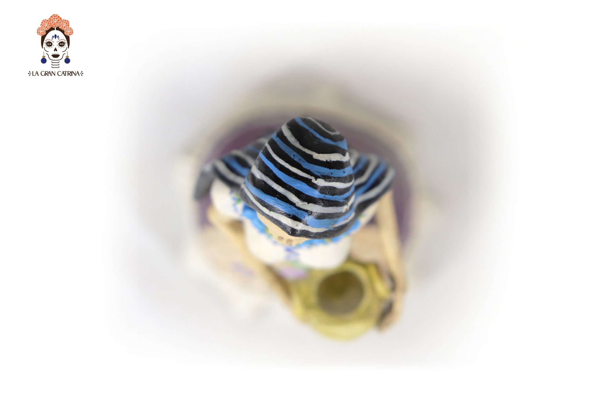 La Catrina es representada por la imagen de una calavera ataviada con un sombrero de plumas a la moda europea del siglo XIX.