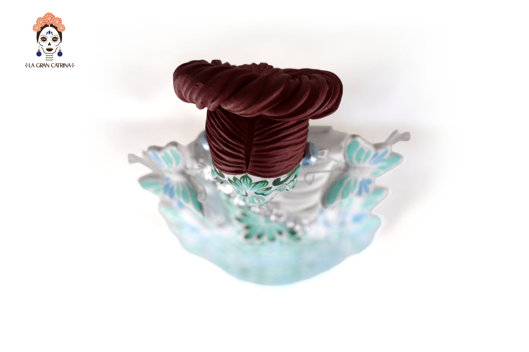 La Catrina es representada por la imagen de una calavera ataviada con un sombrero de plumas a la moda europea del siglo XIX.