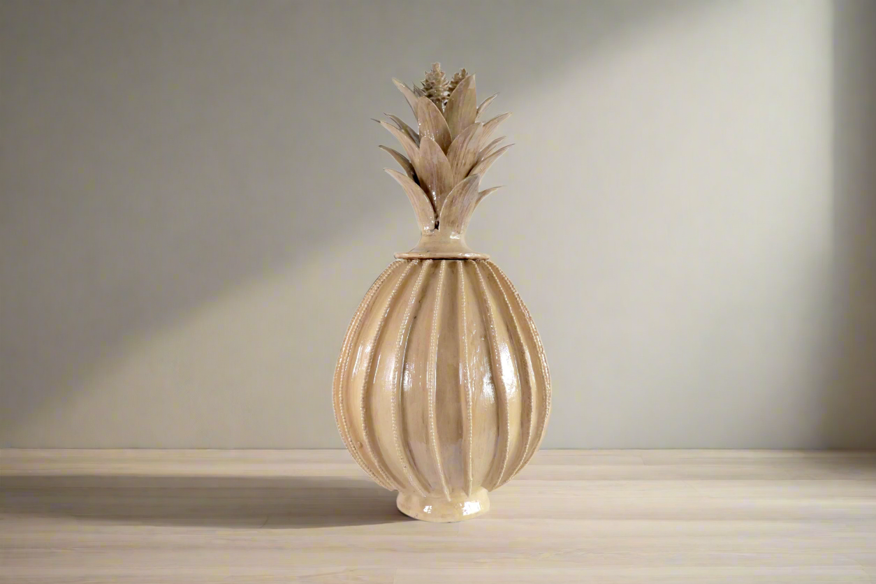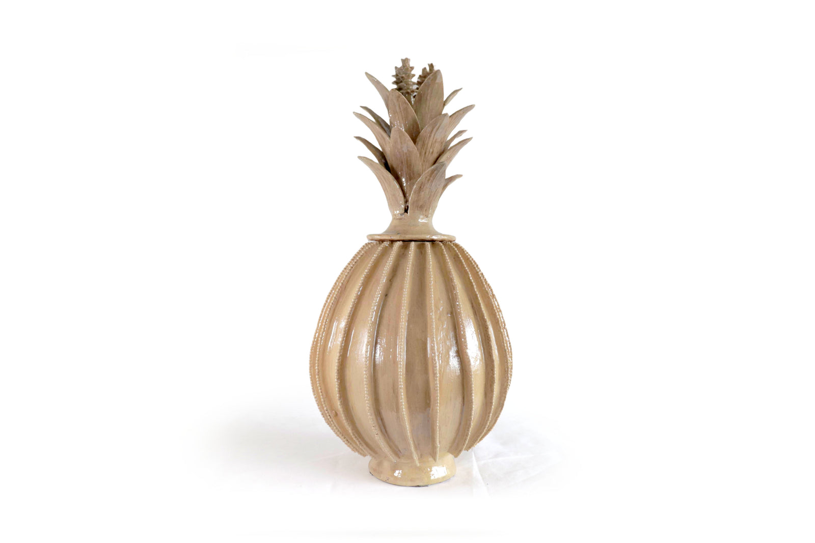 Cada pieza es modelada a mano, en diversos colores, desde el verde oscuro clásico, o el color de una piña natural, entre otras tonalidades, como azul, rojo, amarillo, que despiertan la creatividad artística y finalmente se plasma en los diseños más solicitados.