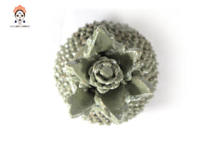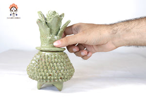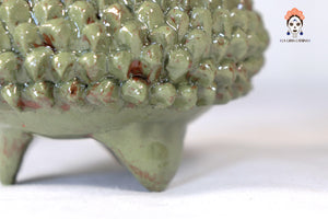 Piña de barro vidriado - Ladrillos verdes olivo - 19 cm. 7.7 in.