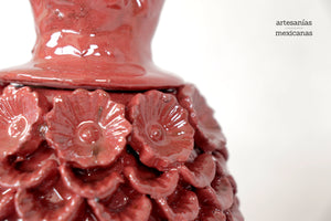 La Piña de Pétalos Roja de Barro Vidriado es una obra maestra de la alfarería mexicana, donde la habilidad artística y la creatividad se unen para crear una pieza única y hermosa. Cada pétalo de la piña está delicadamente labrado y vidriado en un tono rojo intenso y vibrante, que recuerda la belleza de las flores más exóticas.