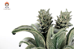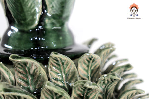 Cada pieza es modelada a mano, en diversos colores, desde el verde oscuro clásico, o el color de una piña natural, entre otras tonalidades, como azul, rojo, amarillo, que despiertan la creatividad artística y finalmente se plasma en los diseños más solicitados.
