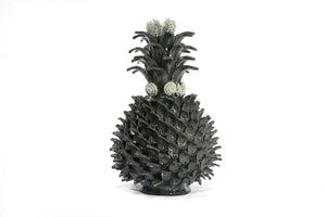 Un verdadero espectáculo visual, donde la habilidad artística y la creatividad se unen para crear una obra maestra única. El azul brillante y que rodea su superficie crean un efecto visual impresionante y atractivo. La textura suave y la forma curvilínea de la piña la hacen ideal para ser tocada y admirada. Su belleza y refinamiento la convierten en un verdadero objeto de deseo para aquellos que aprecian el arte y la decoración.