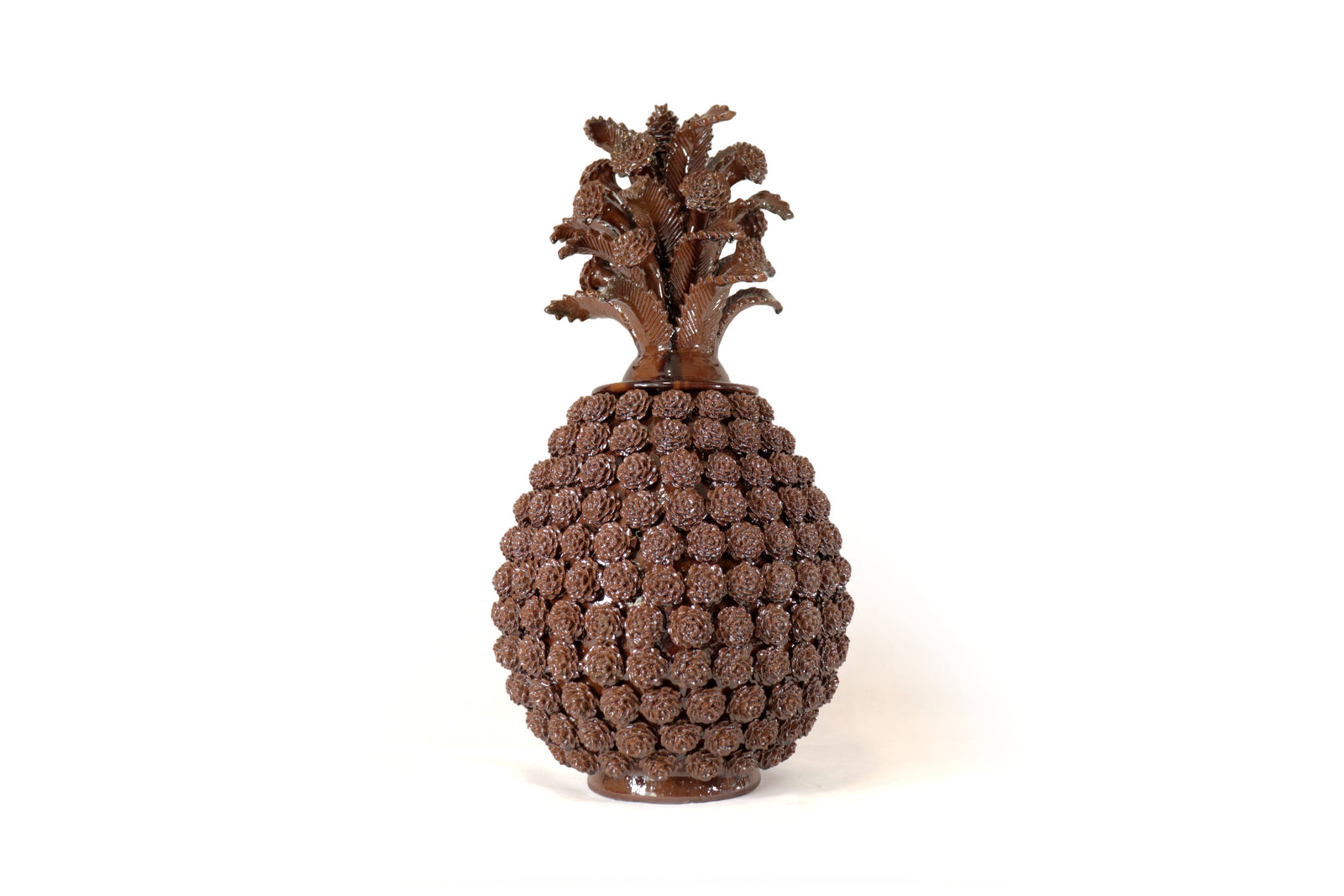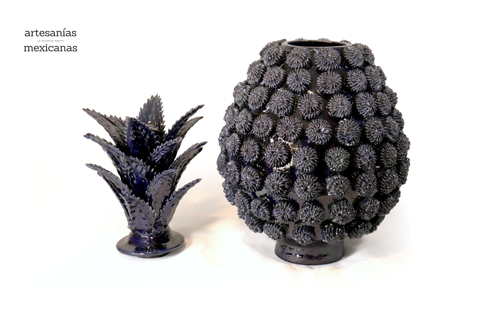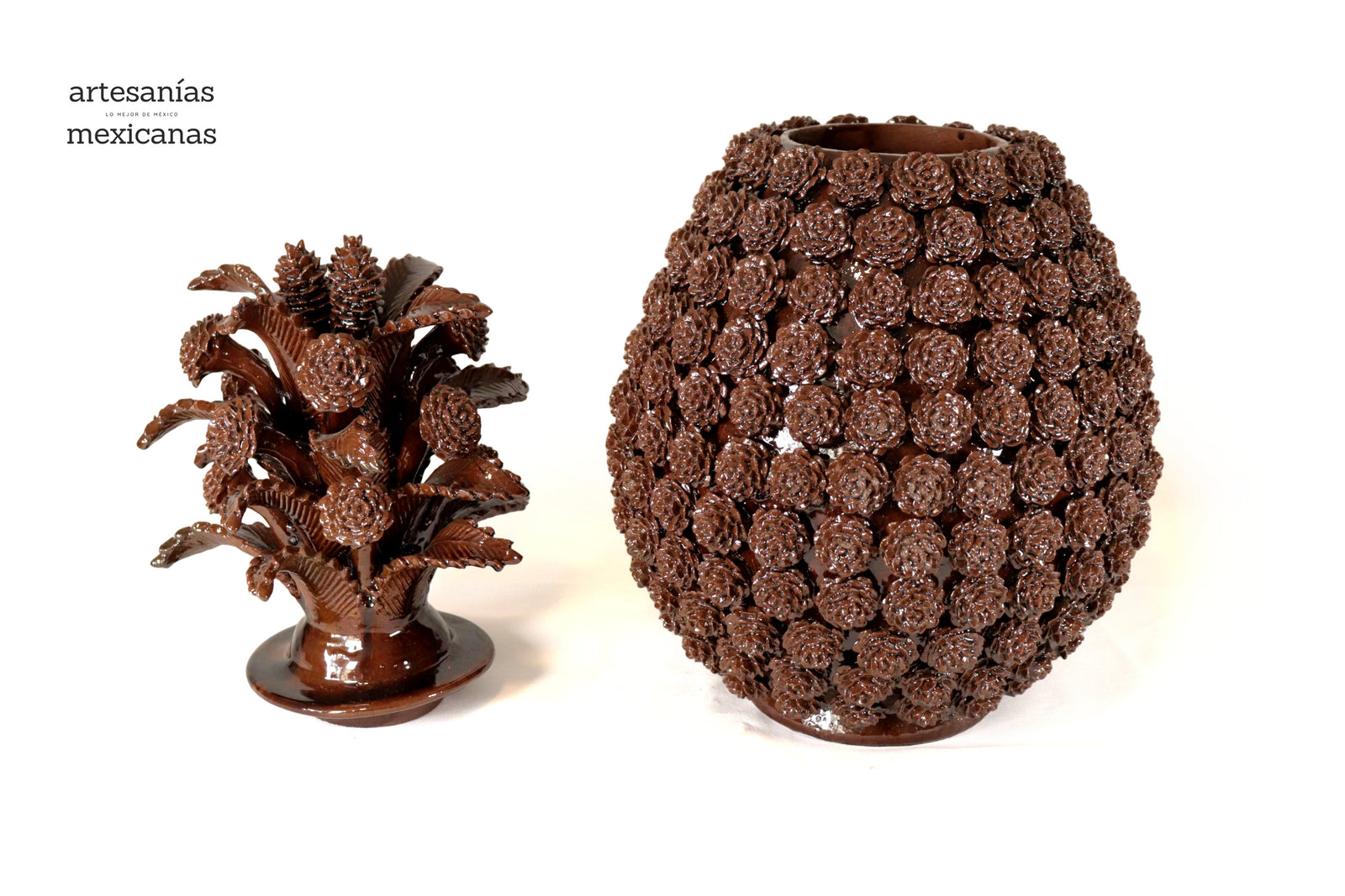 Las piñas de barro vidriado del municipio de Tangancícuaro son artesanías muy llamativas normalmente usadas como grandes o pequeños adornos en los hogares o haciendas de México, EEUU y otros países.