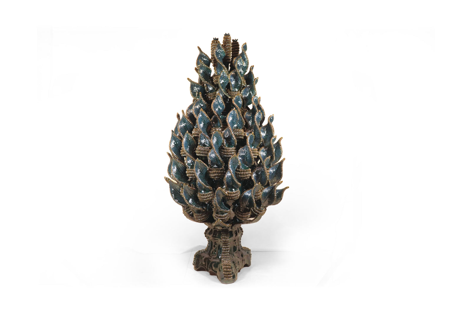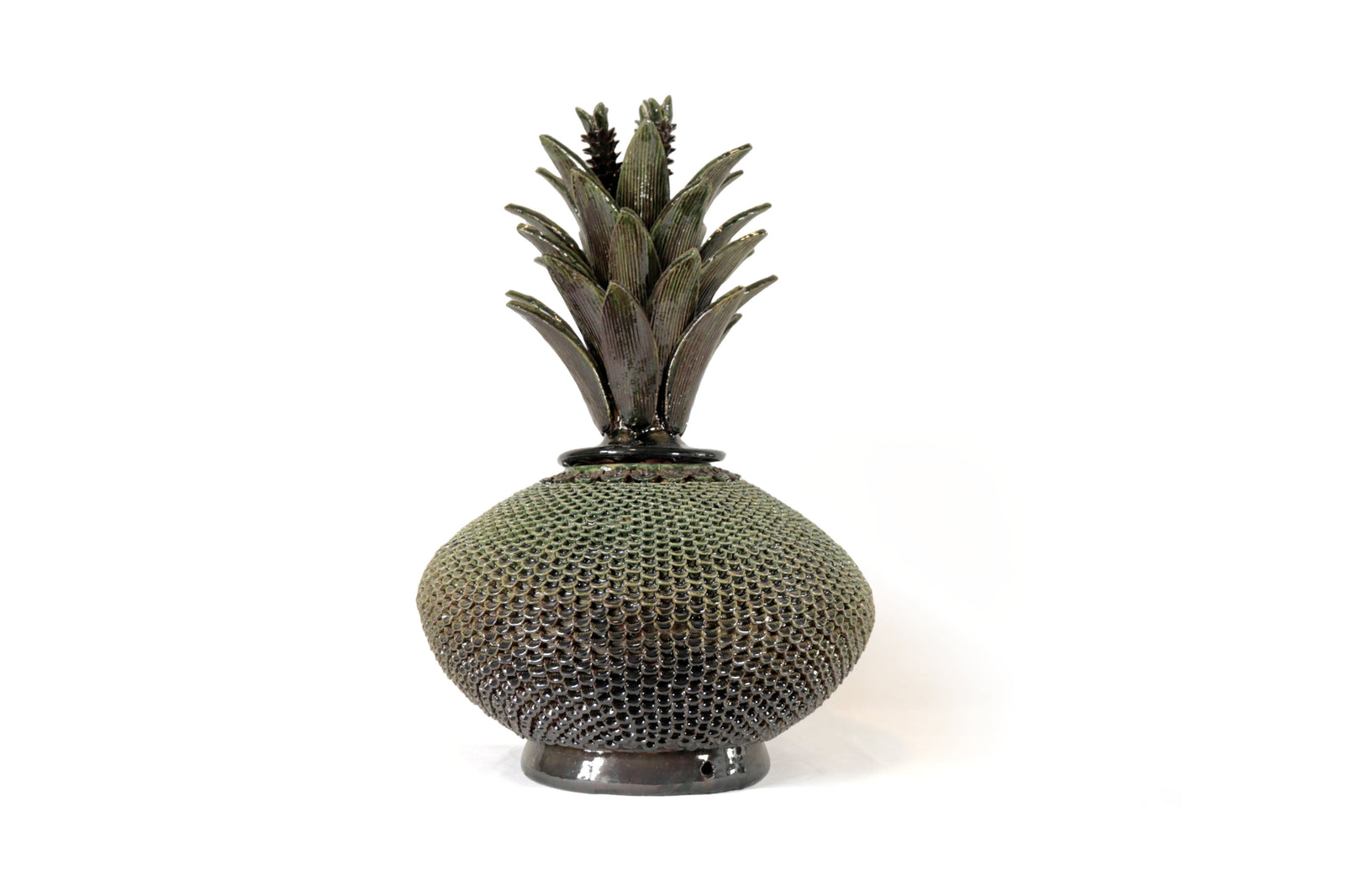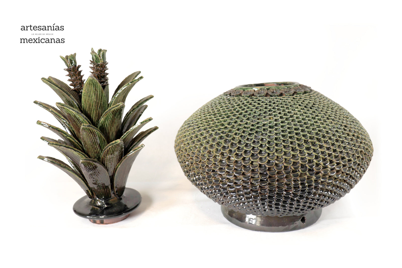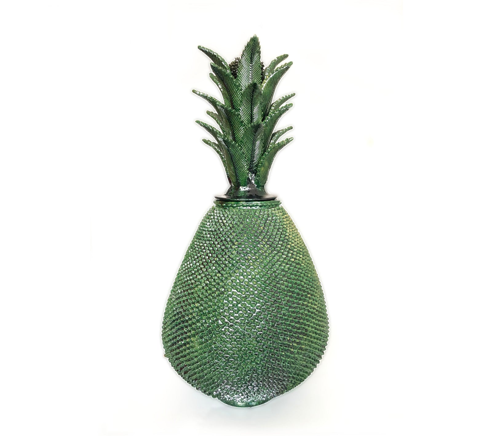 Cada pieza es modelada a mano, en diversos colores, desde el verde oscuro clásico, o el color de una piña natural, entre otras tonalidades, como azul, rojo, amarillo, que despiertan la creatividad artística y finalmente se plasma en los diseños más solicitados.