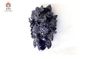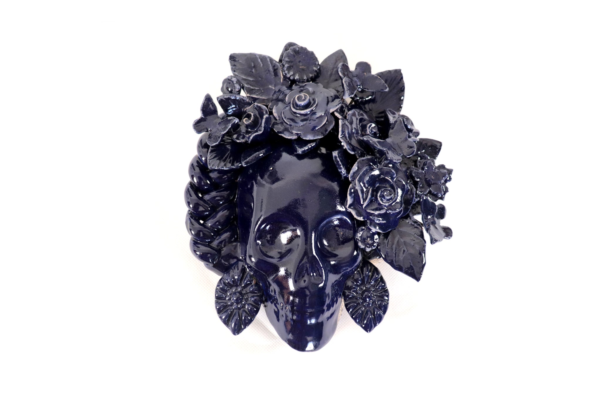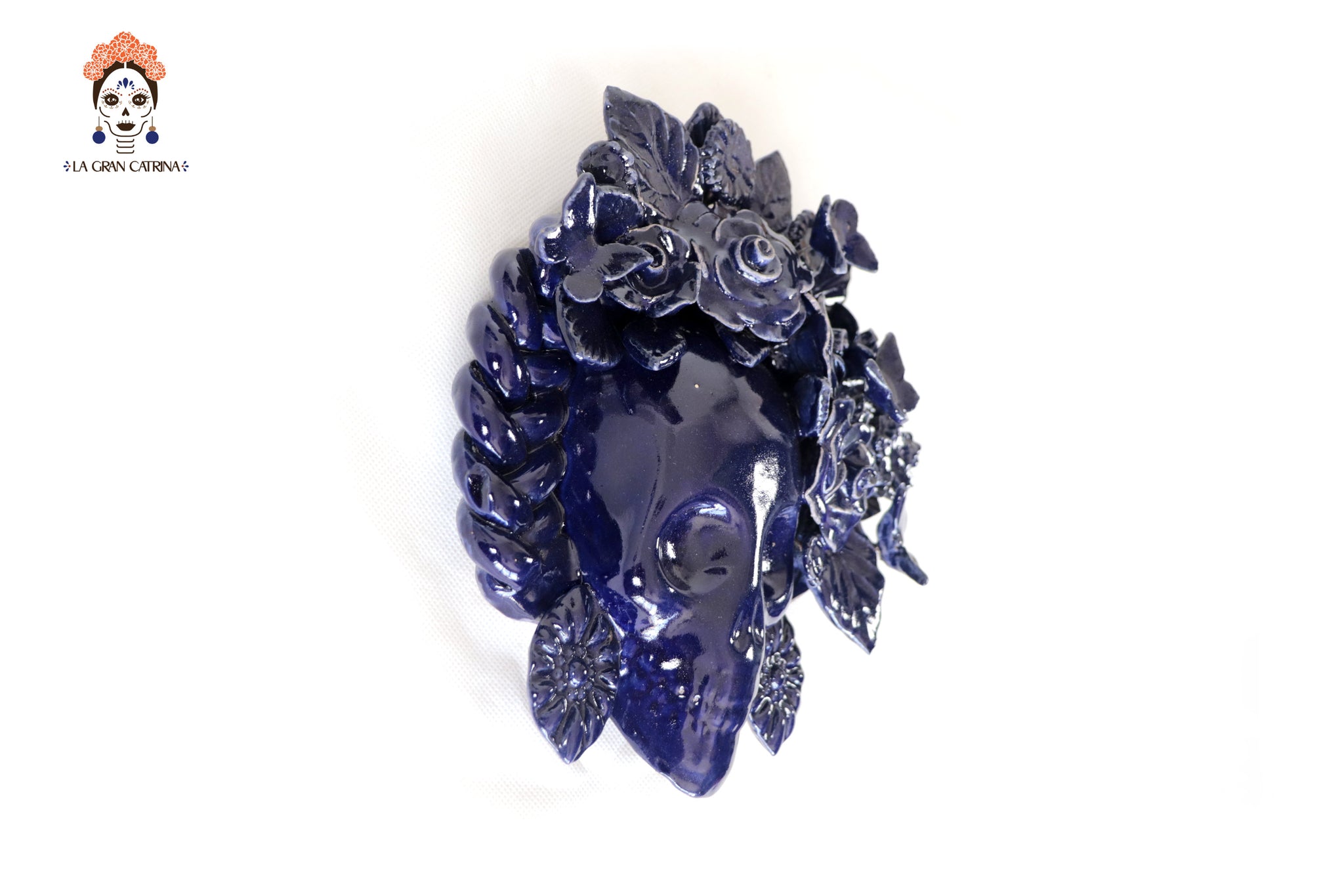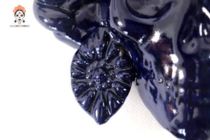 Calavera azul mediana de pared II - Barro vidriado - 19.5 cm. 7.6 in.