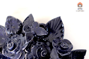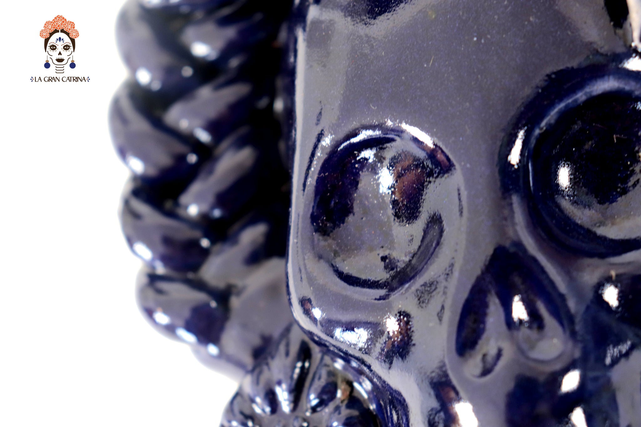 La calavera, pintada a mano sobre barro cerámico, presenta un diseño delicado y preciso, que nos invita a reflexionar sobre la vida y la muerte. Cada rasgo es un homenaje al arte y la tradición mexicanos, que nos permiten celebrar la vida y la muerte de manera respetuosa y digna.