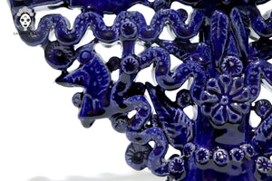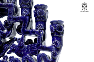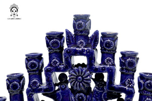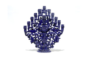 Candelero azul de 11 velas - Barro vidriado - 32 cm. 13 in.