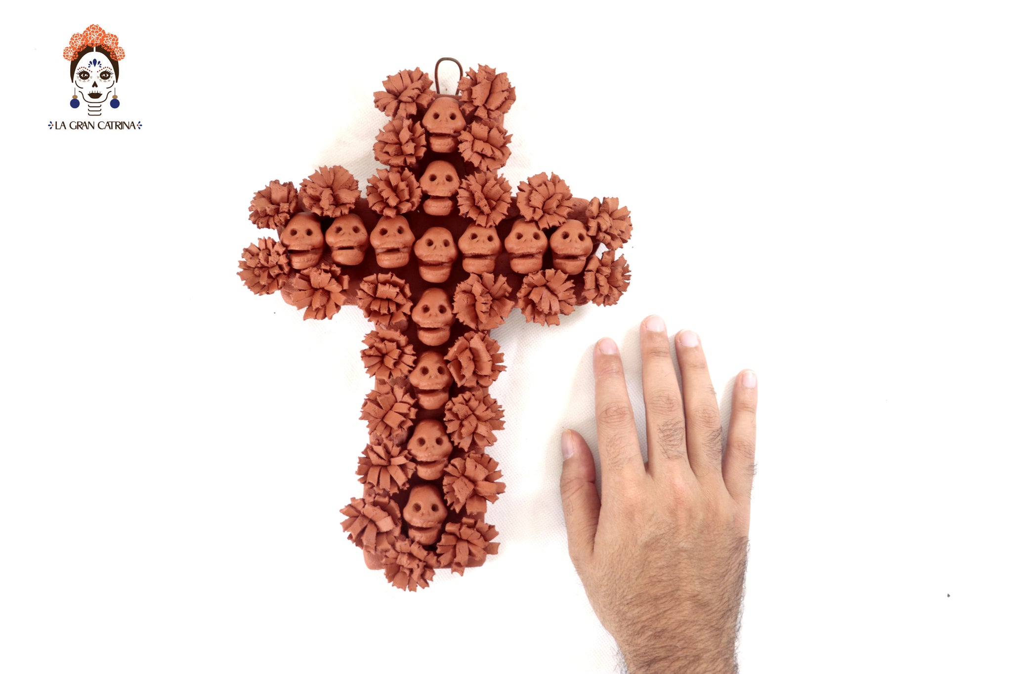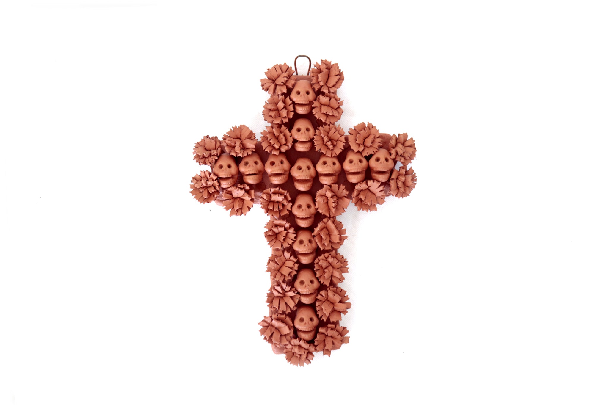 Cruz decorativa hechos por artesanos especializados en el arte en barro de la comunidad de Capula, Morelia, Michoacán.