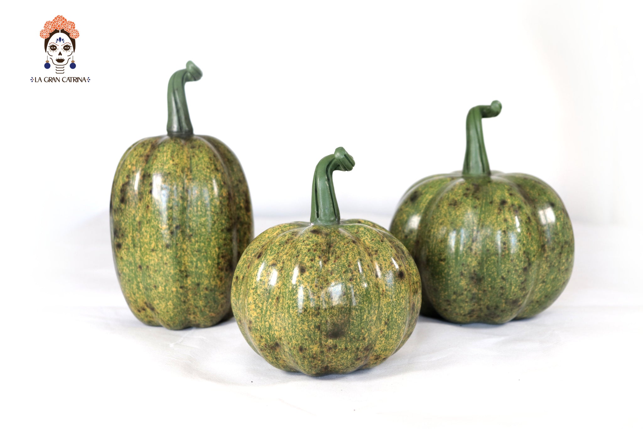 En el corazón de la tradición artesanal mexicana, las calabazas verdes son símbolos de la abundancia y la fertilidad. En este juego hemos capturado su esencia y la hemos plasmado en 3 calabazas individualmente pintadas a mano.
