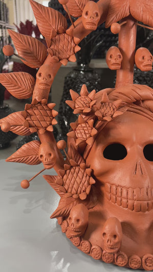 Ofrenda tradicional de Día de Muertos hecha por artesanos especializados en el arte en barro de la comunidad de Capula, Morelia, Michoacán.