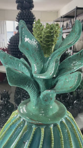 Un verdadero espectáculo visual, donde la habilidad artística y la creatividad se unen para crear una obra maestra única. Esta piña de turquesa brillante está labrada con delicadeza y pintada con un tono intenso y vibrante que evoca el color del cielo en un día de verano.
