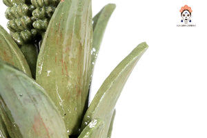 Cada pieza es modelada a mano, en diversos colores, desde el verde oscuro clásico, o el color de una piña natural, entre otras tonalidades, como azul, rojo, amarillo, que despiertan la creatividad artística y finalmente se plasma en los diseños más solicitados.