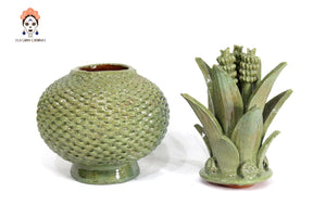 Piña michoacana de barro - Verde claro de bolitas - 32 cm. 13 in. - Sobre Pedido