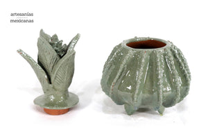 Piña michoacana de barro - Verde olivo pequeña biznaga - 19 cm. 7.7 in. - Sobre Pedido