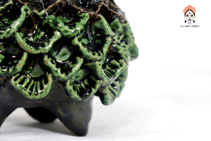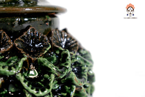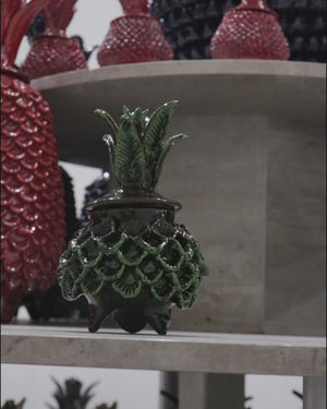 Cada pieza es modelada a mano, en diversos colores, desde el verde oscuro clásico, o el color de una piña natural, entre otras tonalidades, como azul, rojo, amarillo, que despiertan la creatividad artística y finalmente se plasma en los diseños más solicitados.