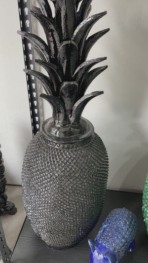 Un objeto de arte exquisito y delicado, donde la habilidad artística y la creatividad se unen para crear una obra maestra única. El negro brillante de la piña y las pequeñas flores que la adornan crean un efecto visual impresionante y atractivo. La textura suave y la forma curvilínea de la piña la hacen ideal para ser tocada y admirada. Sus detalles florales delicados y el tono verde le dan un toque fresco y elegante