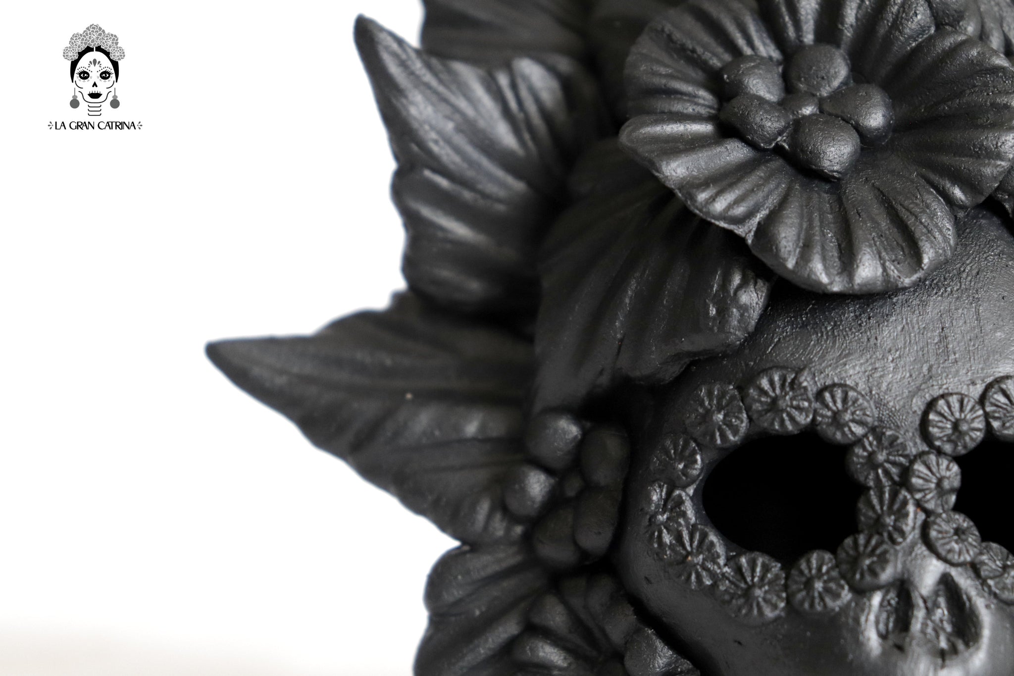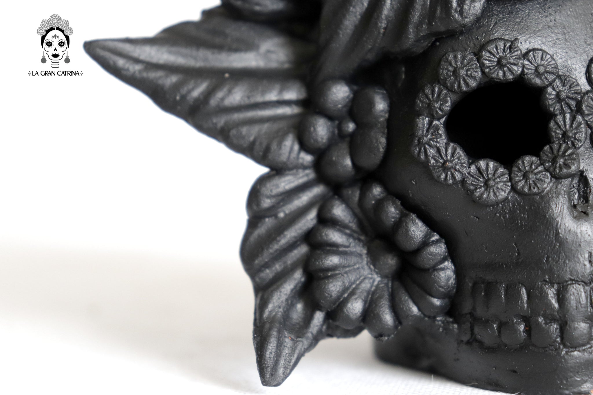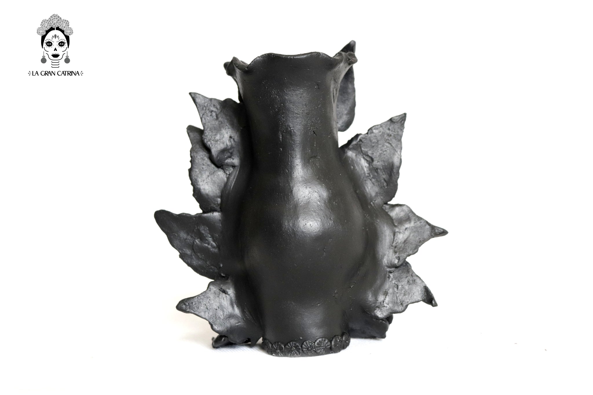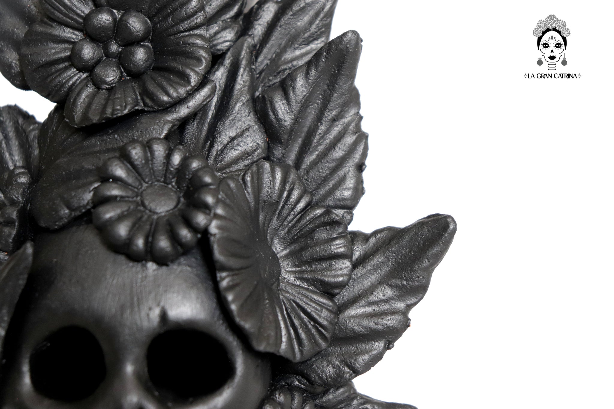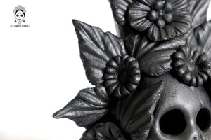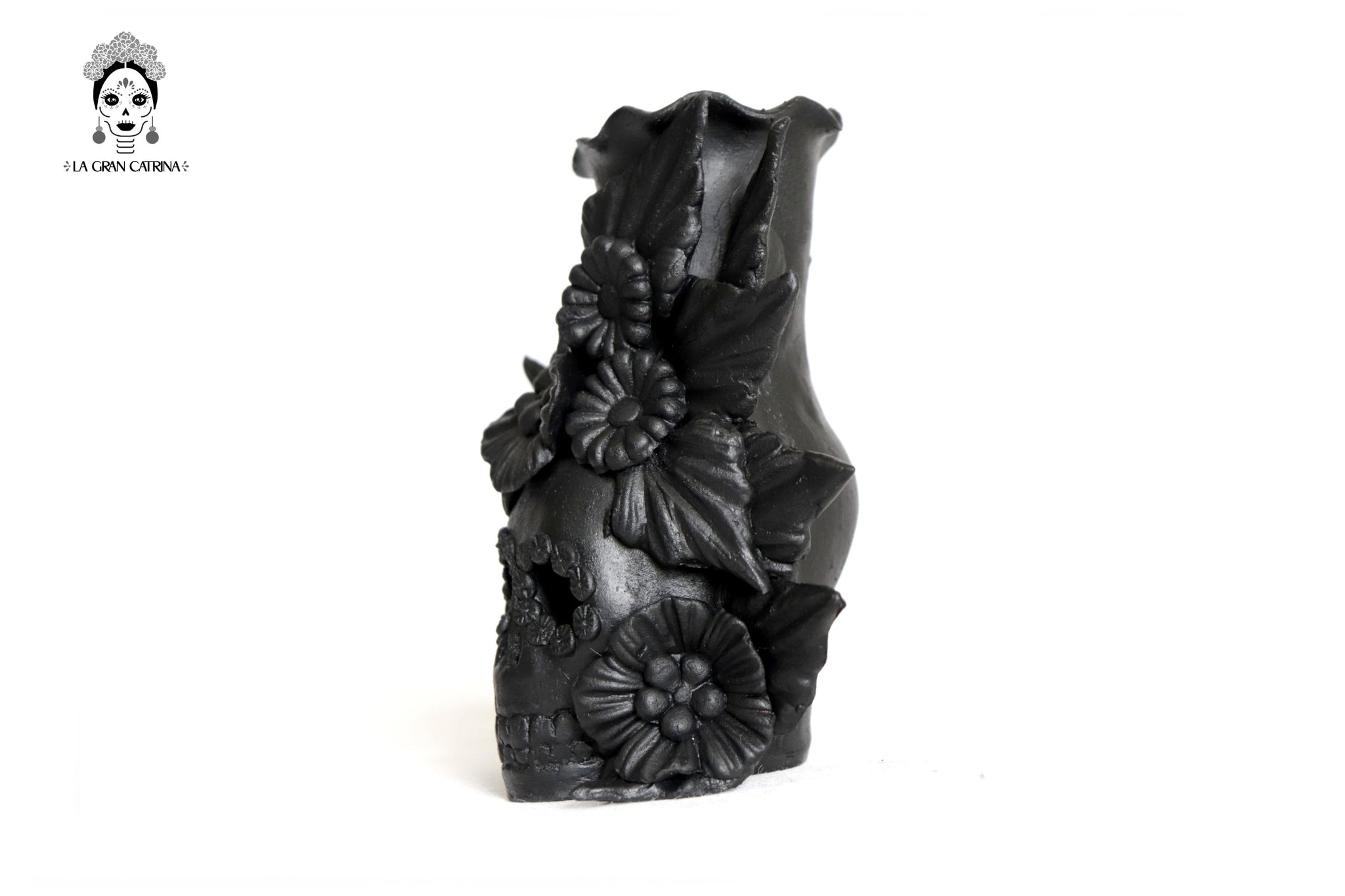 Candelero de calavera estilo Catrina hecha por artesanos especializados en el arte en barro de la comunidad de Capula, Morelia, Michoacán.