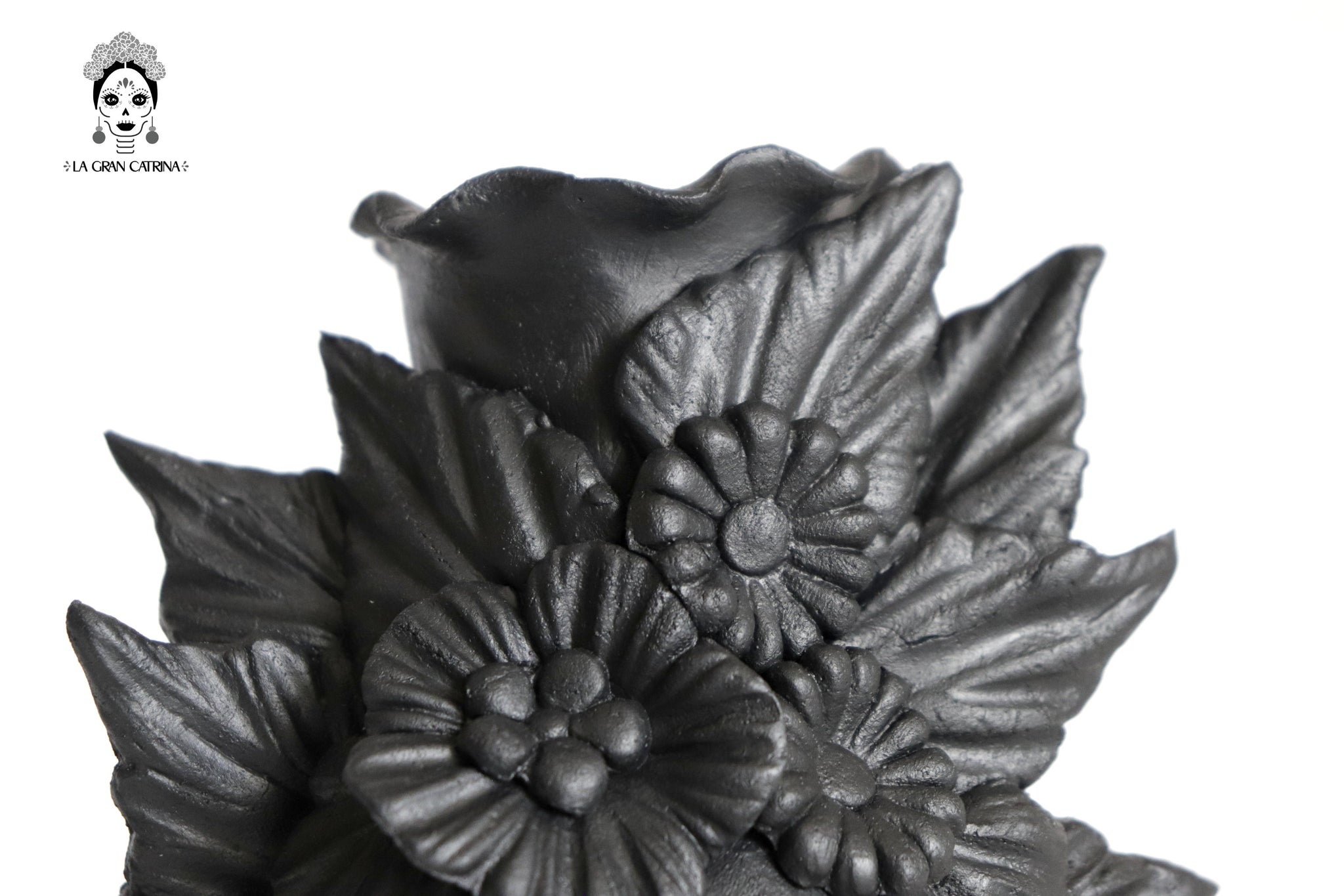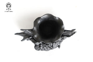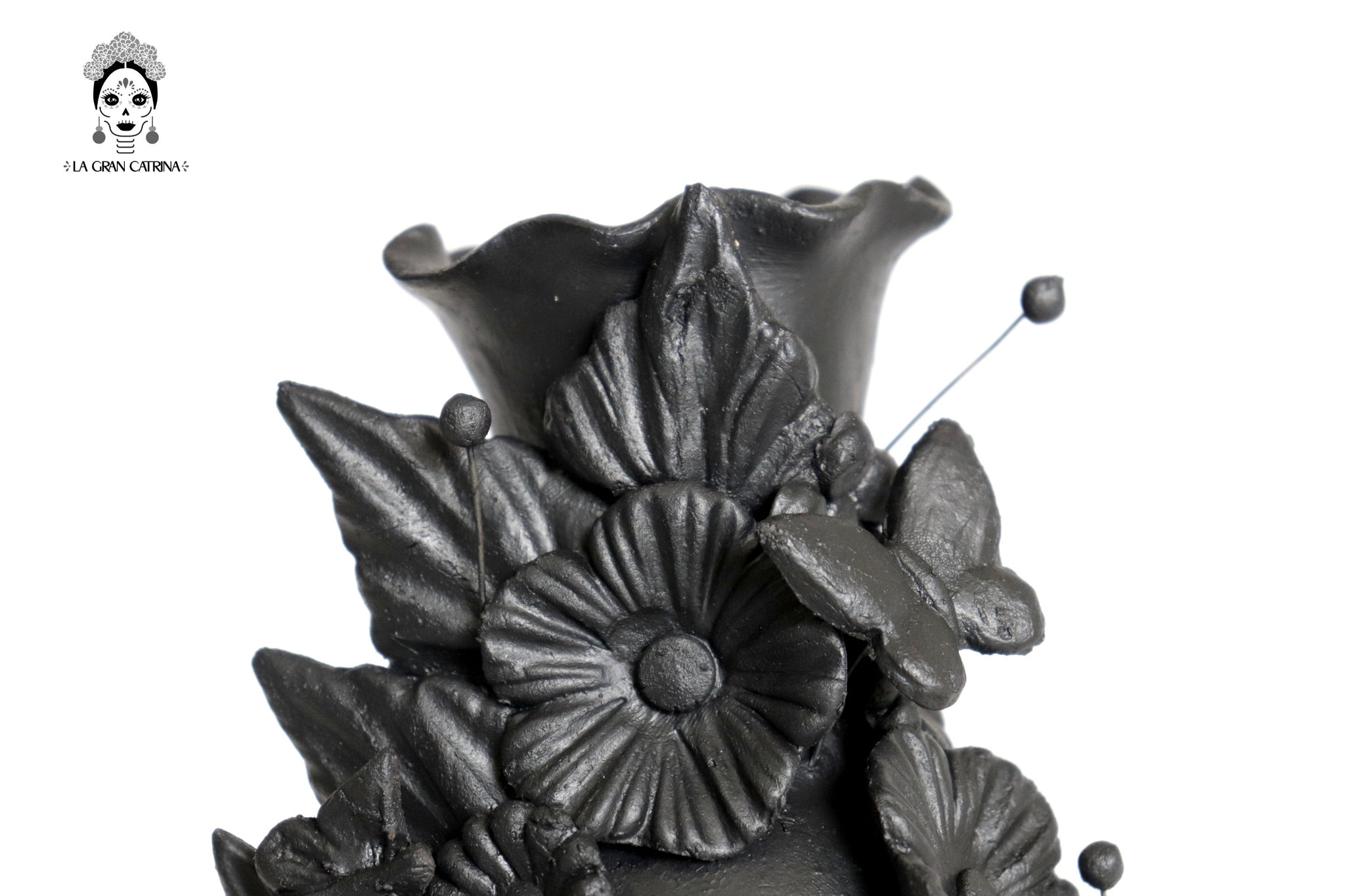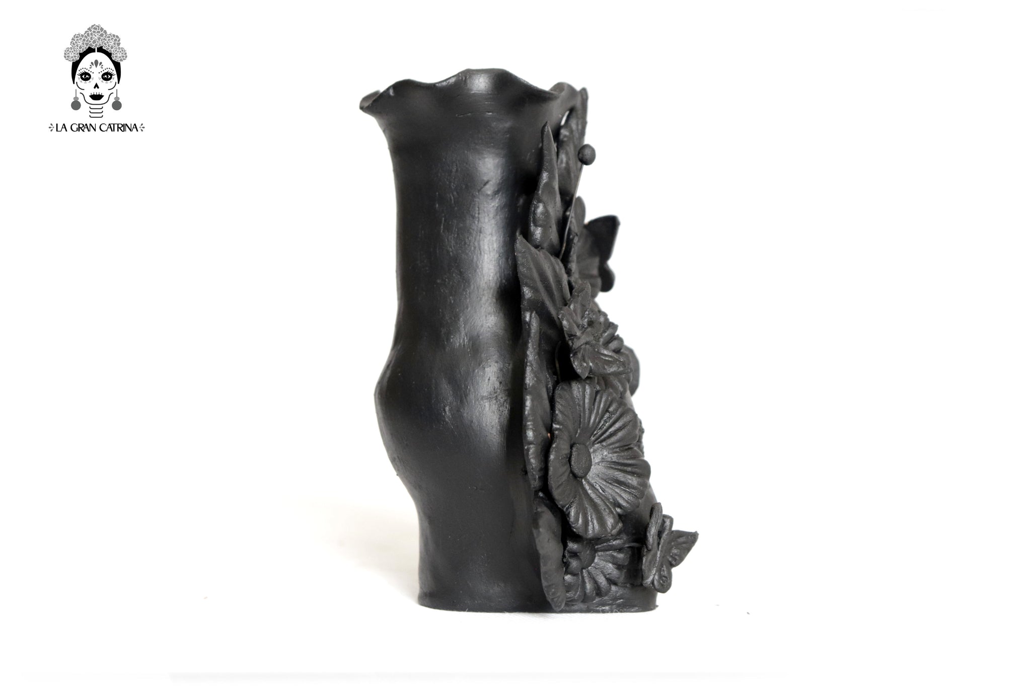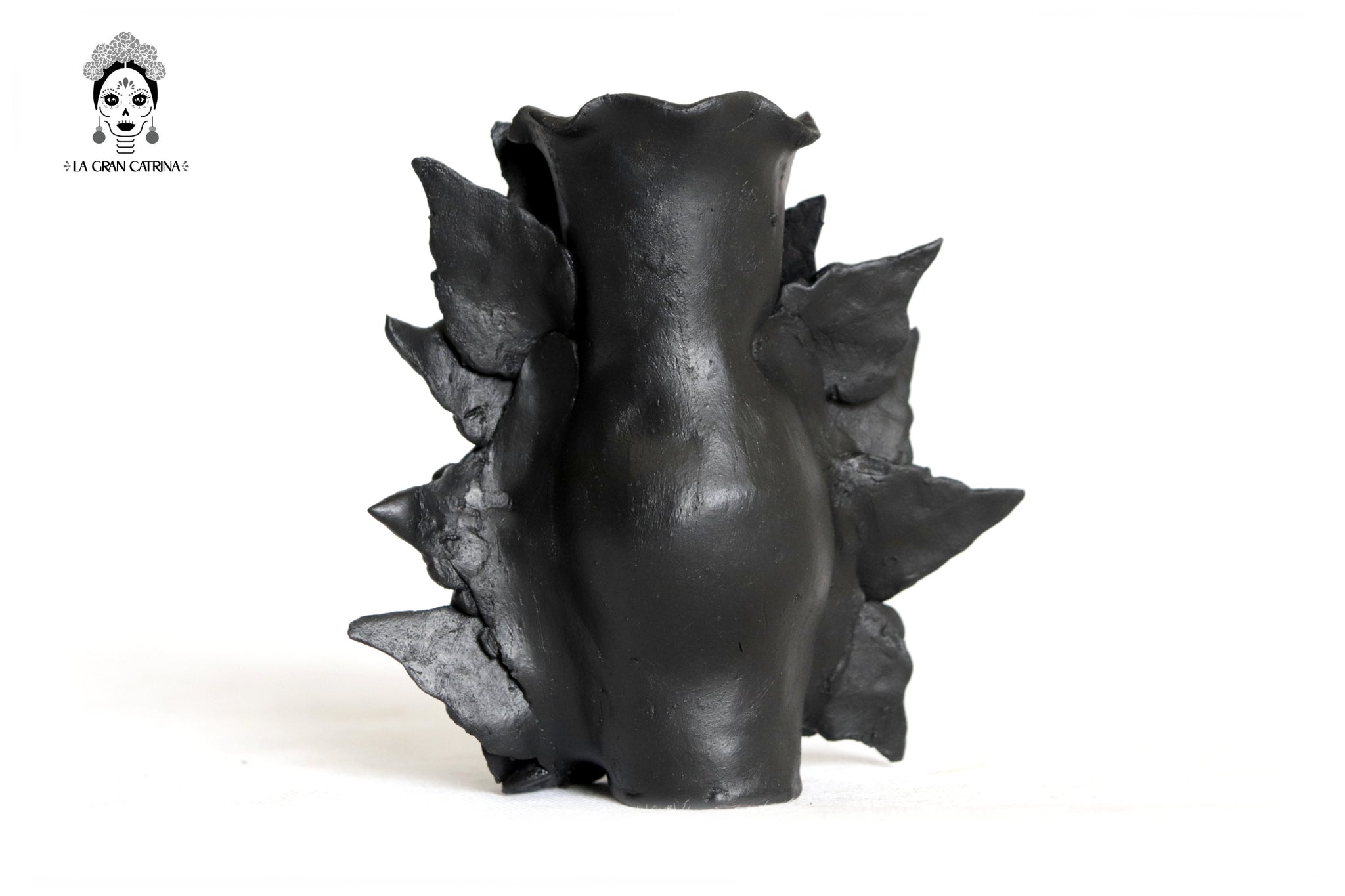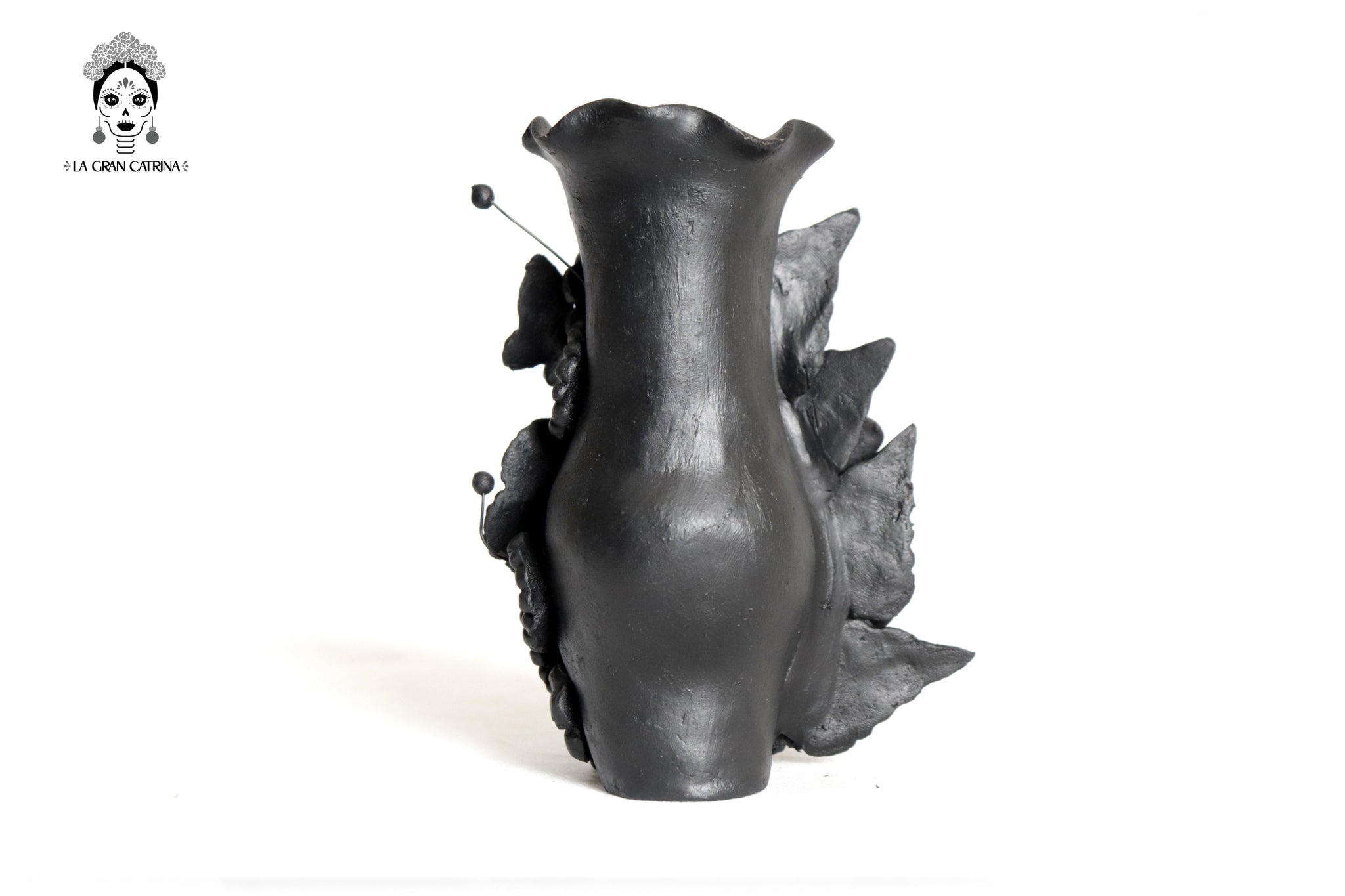 Candelero de calavera estilo Catrina hecha por artesanos especializados en el arte en barro de la comunidad de Capula, Morelia, Michoacán.